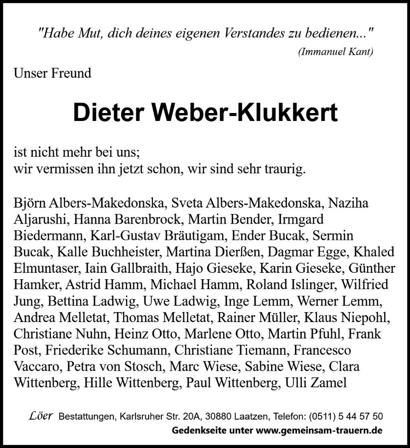 Wenn ich an Dieter denke, denke ich an seinen freundlichen, offenen und wertschätzenden Charakter, der mir ein Lächeln ins Gesicht zaubert. Wir haben ein Stück unseres Lebensweges gemeinsam verbracht und dafür bin ich sehr dankbar.