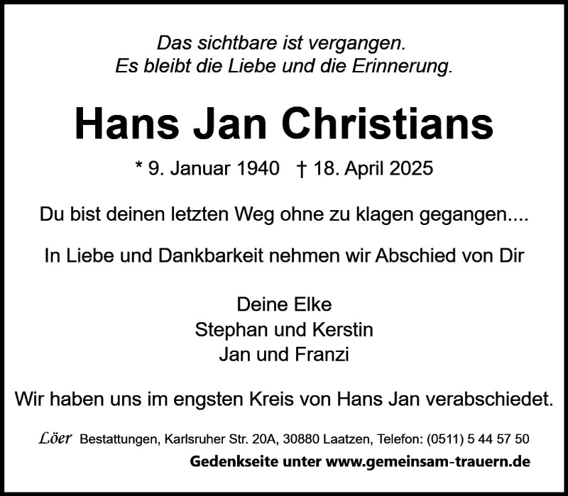 zum Tod von Hansi möchten wir unsere aufrichtige