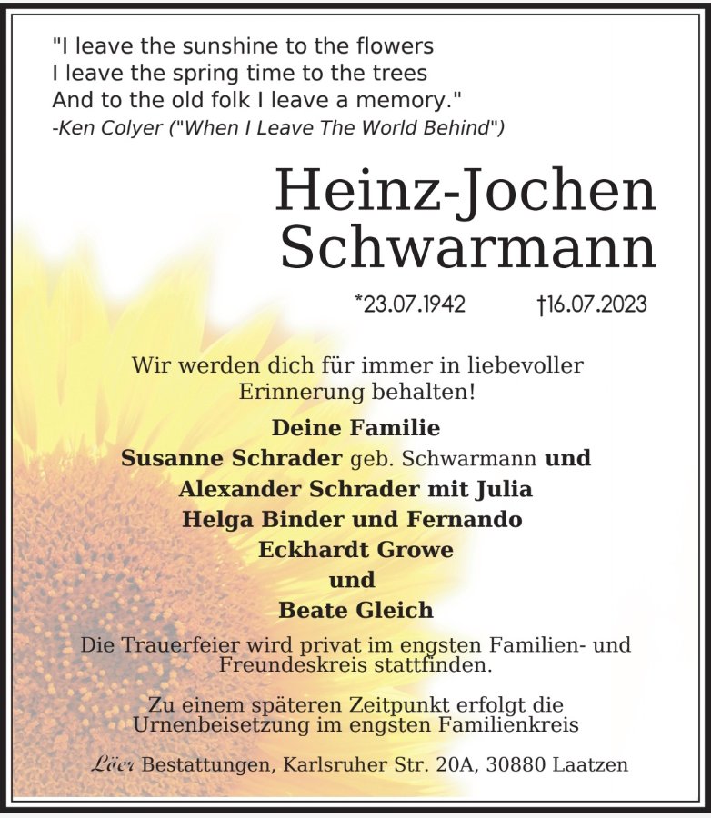 gestorben am 16. Juli 2023 in Sehnde