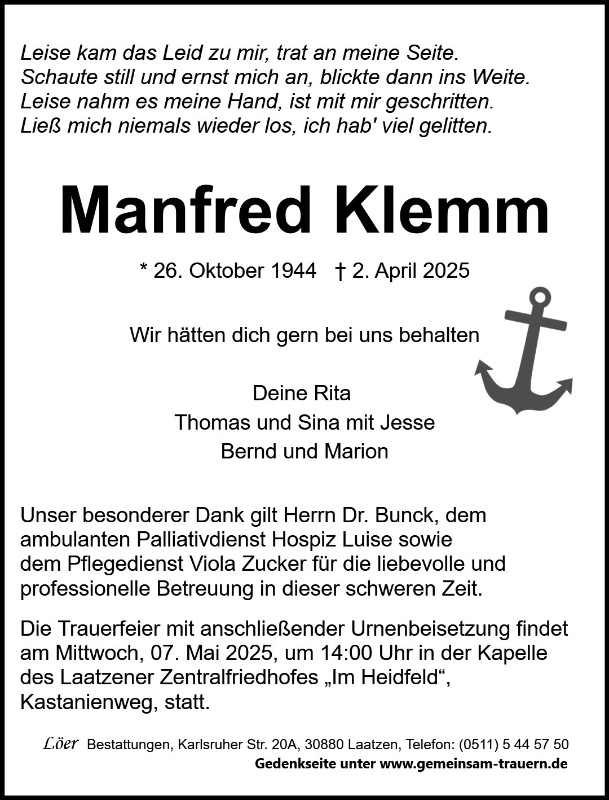 in diesen Tagen fühlen wir mit Ihnen und wünschen Ihnen von Herzen, dass Sie aus den glücklichen Erinnerungen Kraft schöpfen, um positiv in die Zukunft zu gehen. Diese Gedenkseite möge Ihnen dabei helfen, Ihre Trauer zu teilen und das Andenken gemeinsam wachzuhalten.