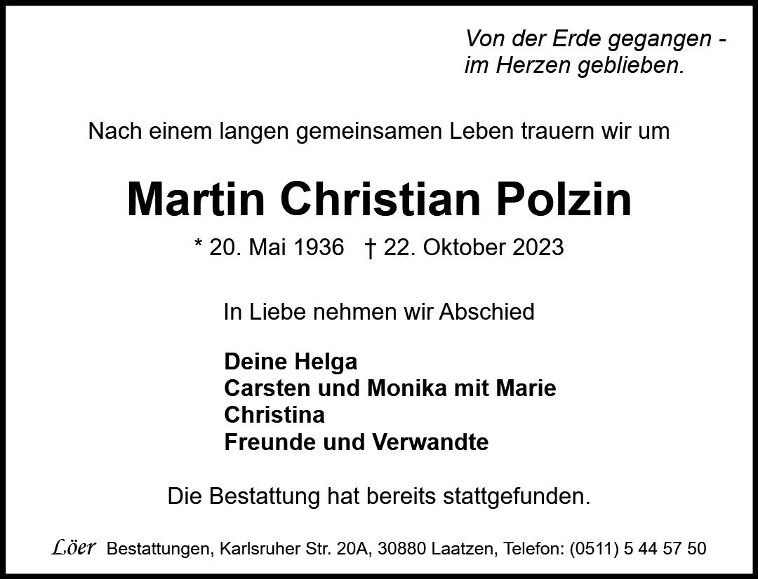 Dem Leben sind Grenzen gesetzt,wir bedauern den Tod Herrn Polzin zutiefst!