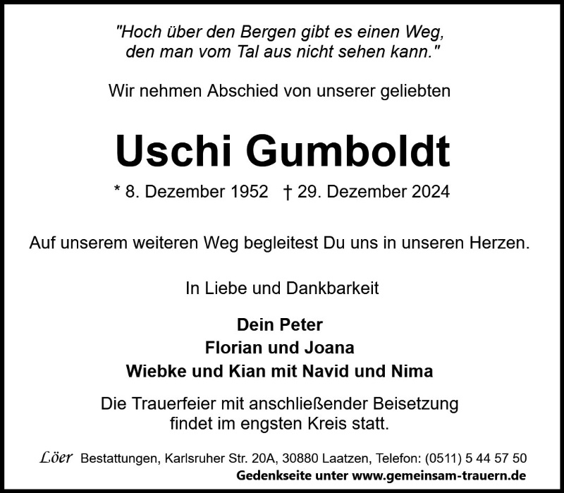 Lesen Sie hier die Anzeigen und Trauerpost!